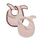 Soft muslin cotton, handmade crochet details, and the option for personalized hand embroidery — a bib made to be as special as your little one.