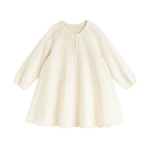 This long-sleeve knitted dress, crafted in a flattering A-line cut, combines comfort with effortless style for a cozy, chic look.