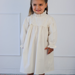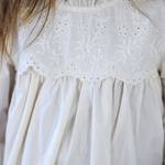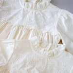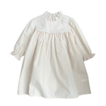 Grace your little girl in timeless elegance with our vintage-inspired dress, featuring a lace-trimmed collar and delicate embroidery on the chest. This refined design transforms the classic romper into a sophisticated dress, perfect for special occasions.
