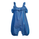 Effortlessly chic and playfully stylish, the Geli Denim Jumpsuit features adorable ruffles in the neck and sleeves. Stay on trend and comfortable in this versatile denim jumpsuit.
