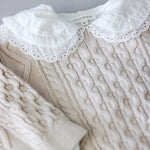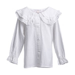 This lightweight white blouse features an enchanting Peter Pan collar with embroidered details, making it the perfect piece to let the collar shine beneath a cozy sweater.