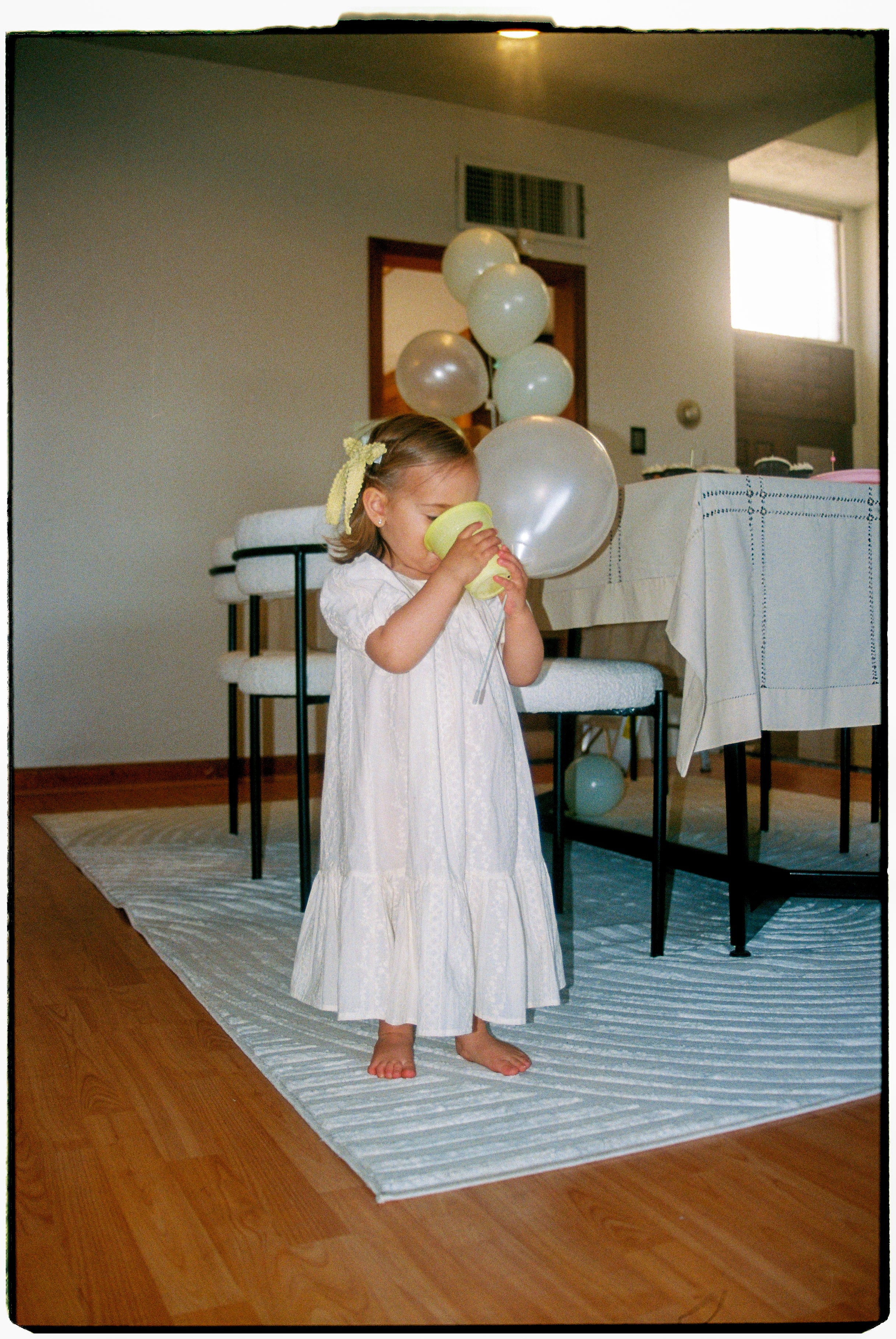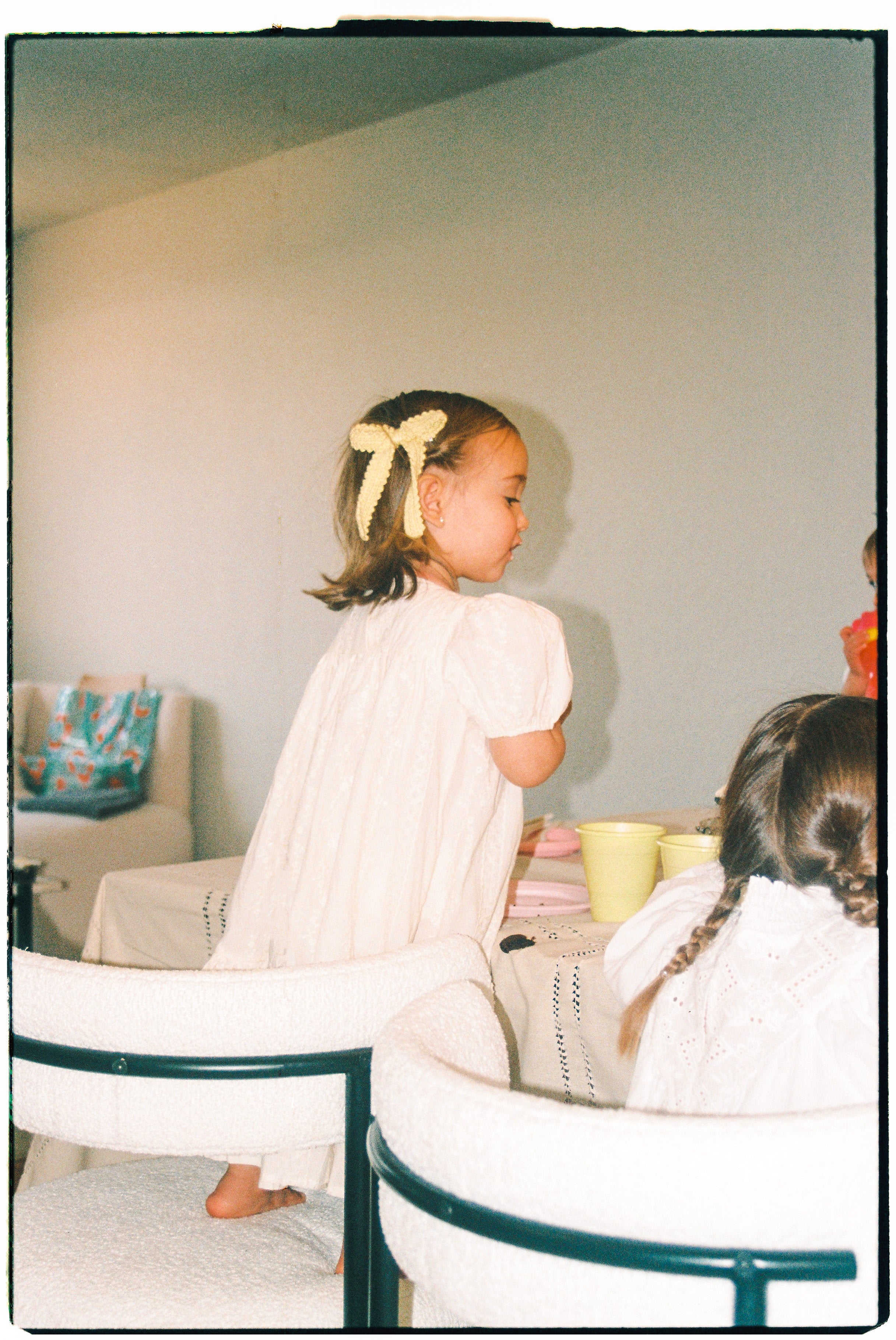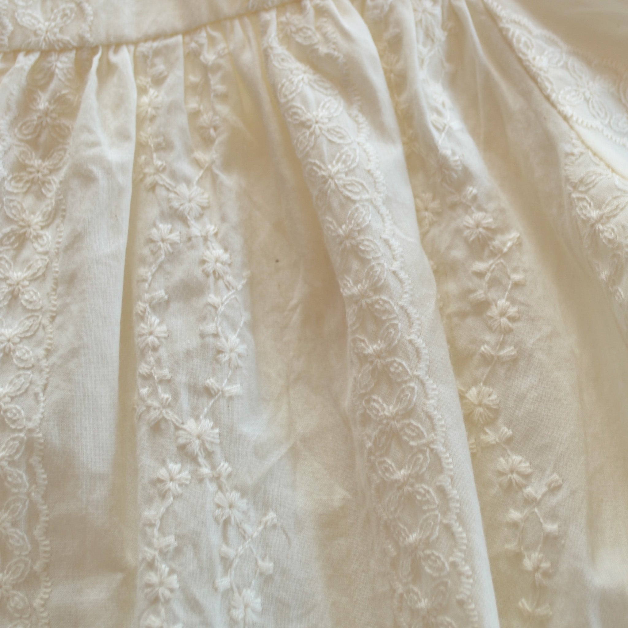 The embroidered details, give this dress a mingled touch of preciousness, capturing the joy & elegance of childhood.