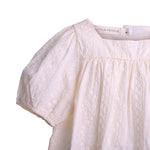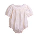 Lia's Natural Romper is very elegant with its short puffed sleeves. It is made from 100% cotton fabric.