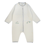 Adorn your little one in our white jumpsuit, featuring cherry details and front buttons—cute, comfy, and oh-so-sweet.