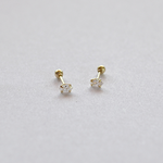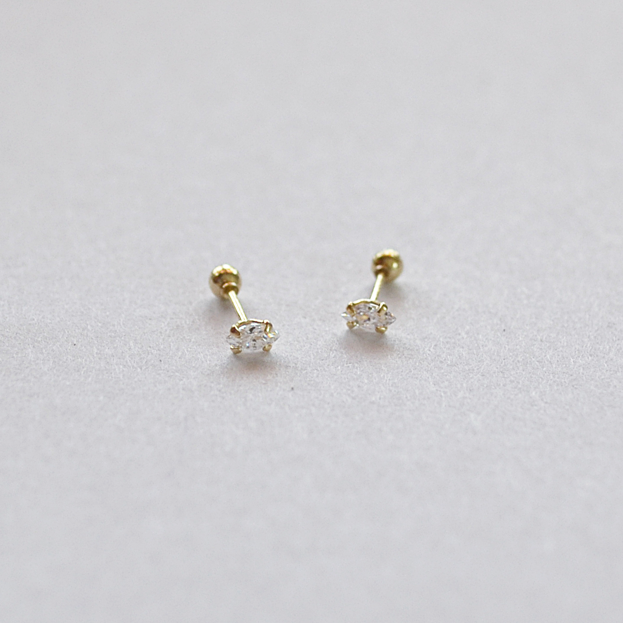 Marquis studs, clear CZ, screw back - 10k gold