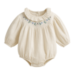 Introducing Mia Romper vintage-inspired romper, capturing the essence of autumn with their charming Pierrot collar.