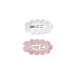 Crafted from 100% cotton, this pink and white crochet hair clips brings a touch of magic and nostalgia to your look. Its delicate handmade design evokes cherished memories while adding a charming, timeless accent to your hairstyle. Perfect for those who appreciate simple, natural beauty with a whimsical twist.