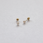 Princess cut studs, 2mm clear CZ, screw back - 10k gold