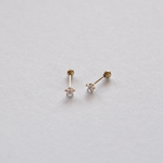 Shining star studs, clear CZ, star cut, screw back - 10k gold