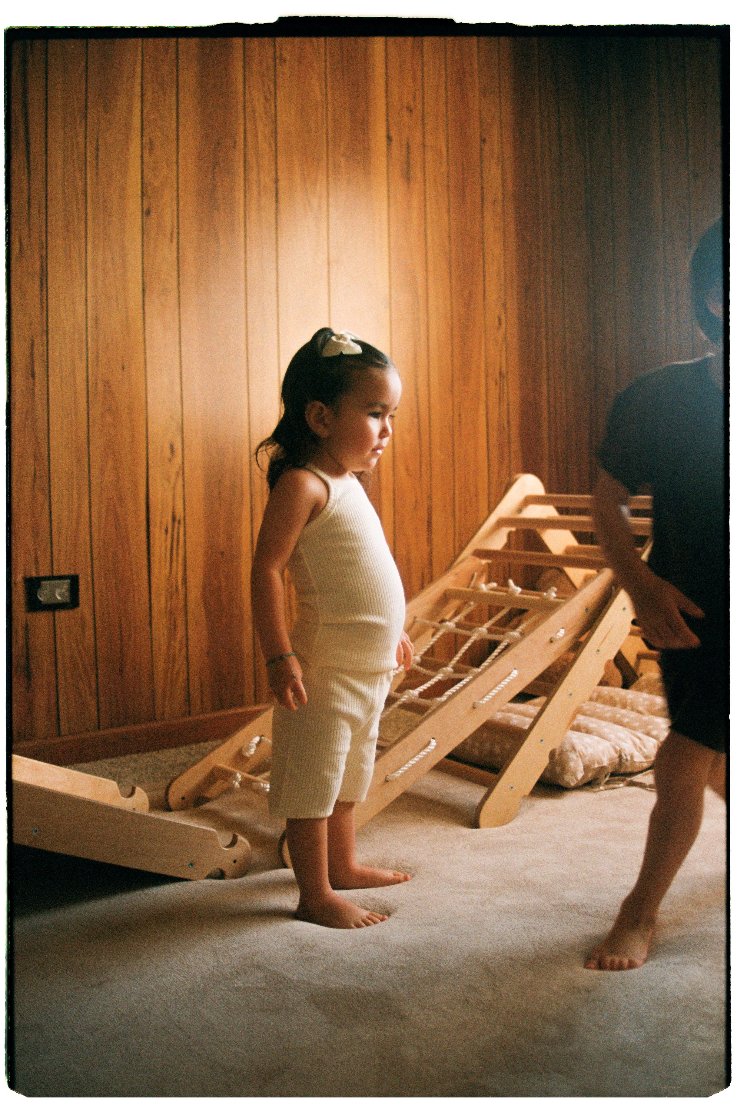 This vertical-lined pajama set in neutral tones creates a delightful ensemble that strikes the perfect balance between style and comfort, ensuring your little ones are ready for cozy nights of sweet dreams and bedtime stories.